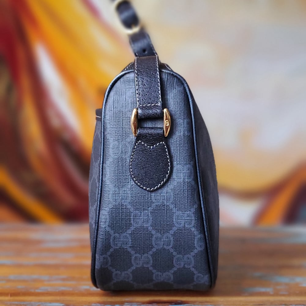 Beautiful like new condition... Has gold hardware with red/green web detail. Measures 10"L x 7.5"H x 4"D with a 22" strap drop. Has an exterior slip pocket and a interior zippered pocket. FREE SHIPPING