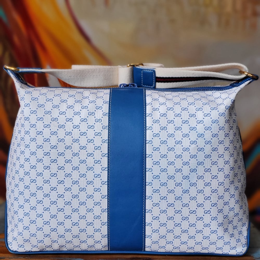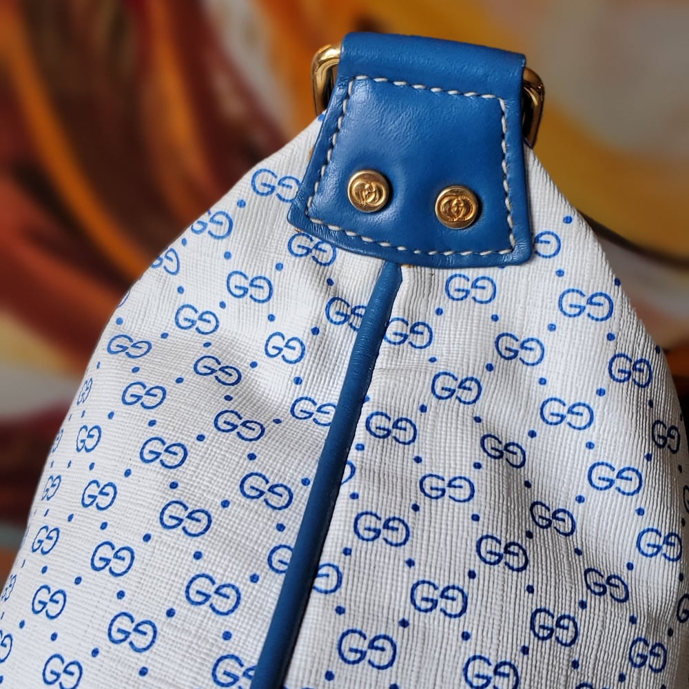 Vtg Gucci Blue Micro Monogram Shoulder/Crossbody Bag