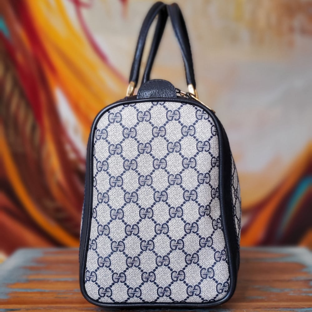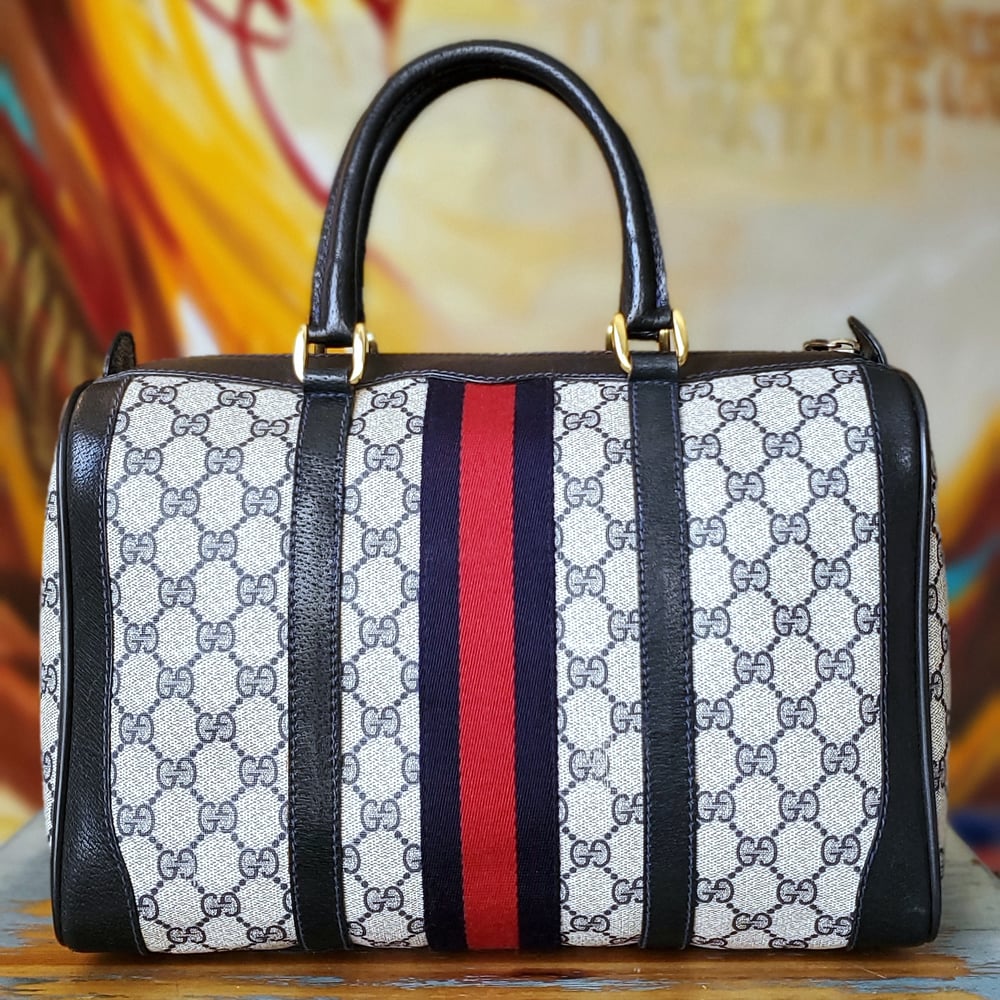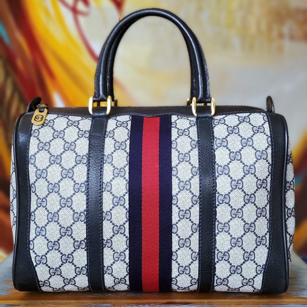 Has gold hardware and red/blue web detail. Measures 13"L x 9"H x 6"D. Zipper has a slight stiffness and I'd also recommend using the zipper to open and close instead of the zipper pull to preserve it. FREE SHIPPING