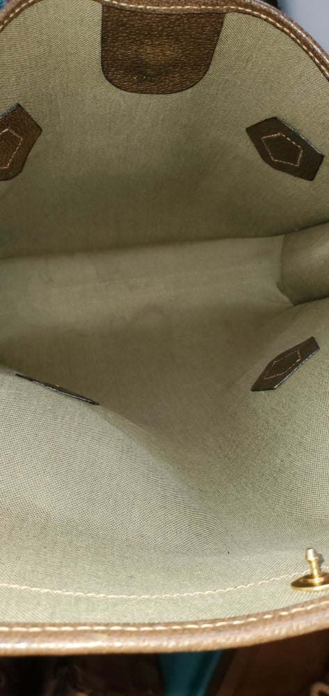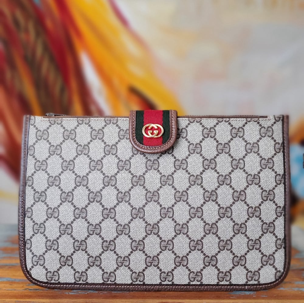 Has gold hardware and red/green web detail and measures 13"H x 13"L x 3.5"D with a detachable clutch that can be worn separately or together with the tote. This bag is an amazing condition. FREE SHIPPING